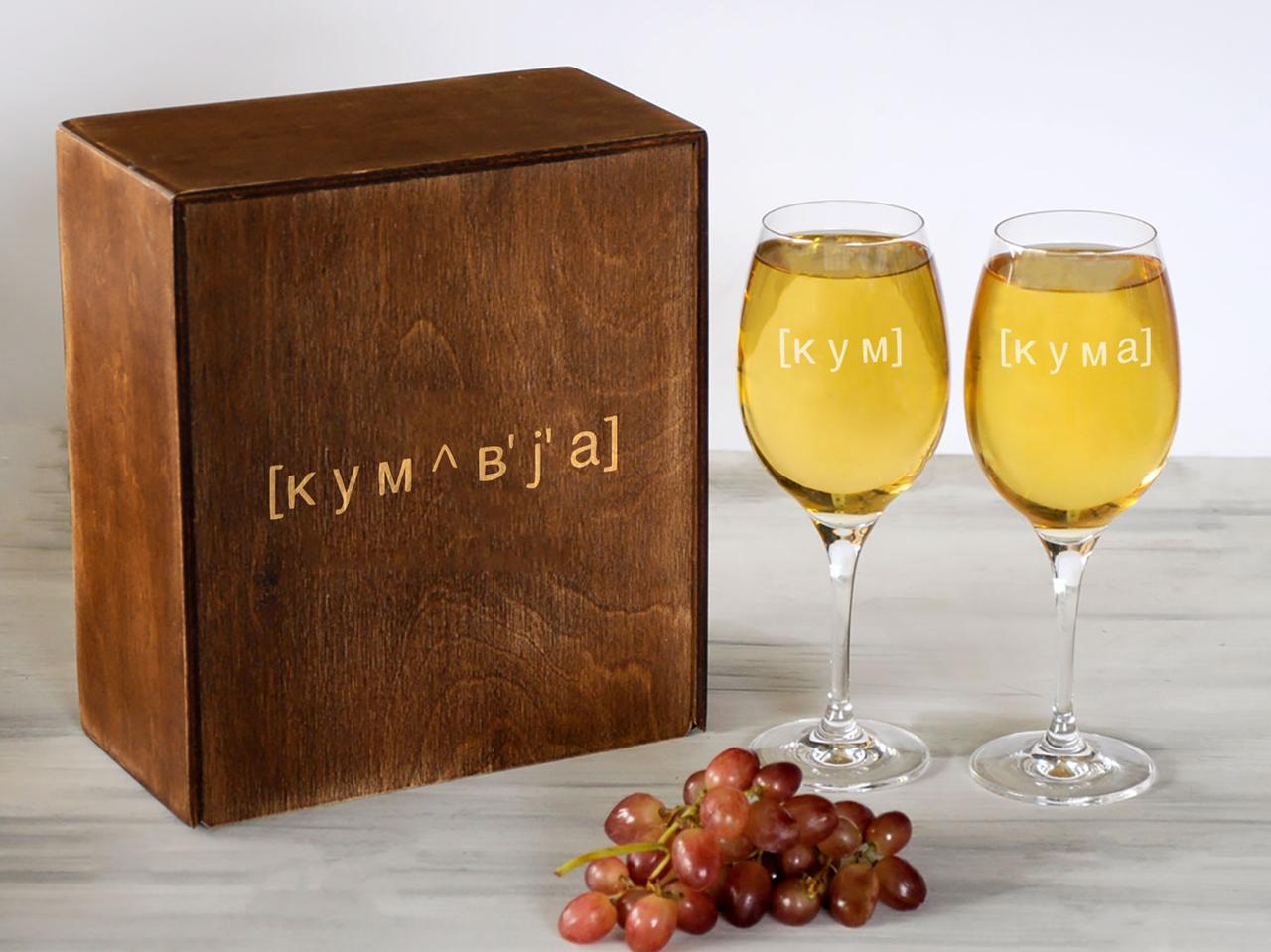 Два келихи для вина з написом "Кум та Кума" 360 мл GT-0045